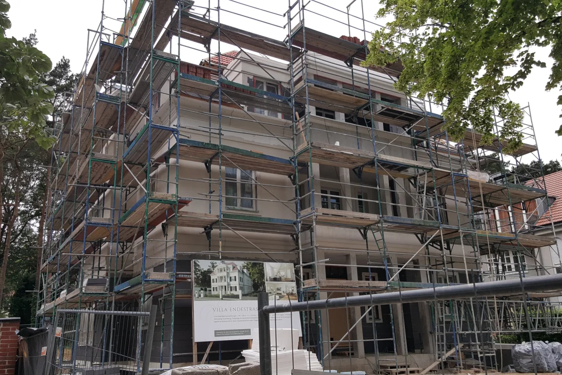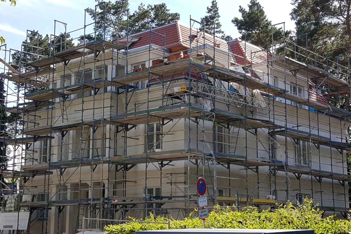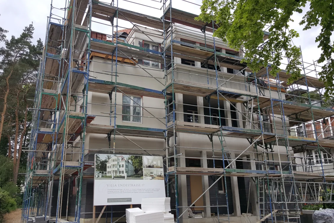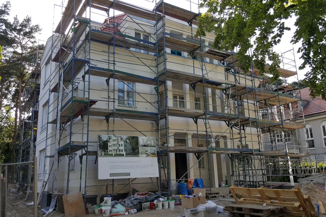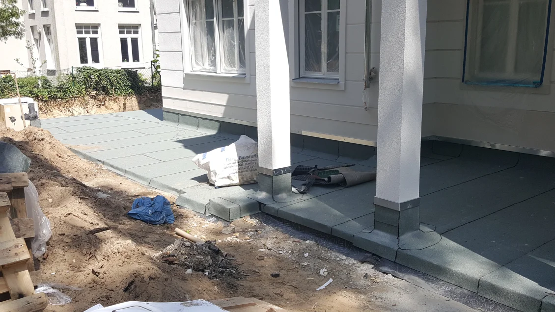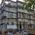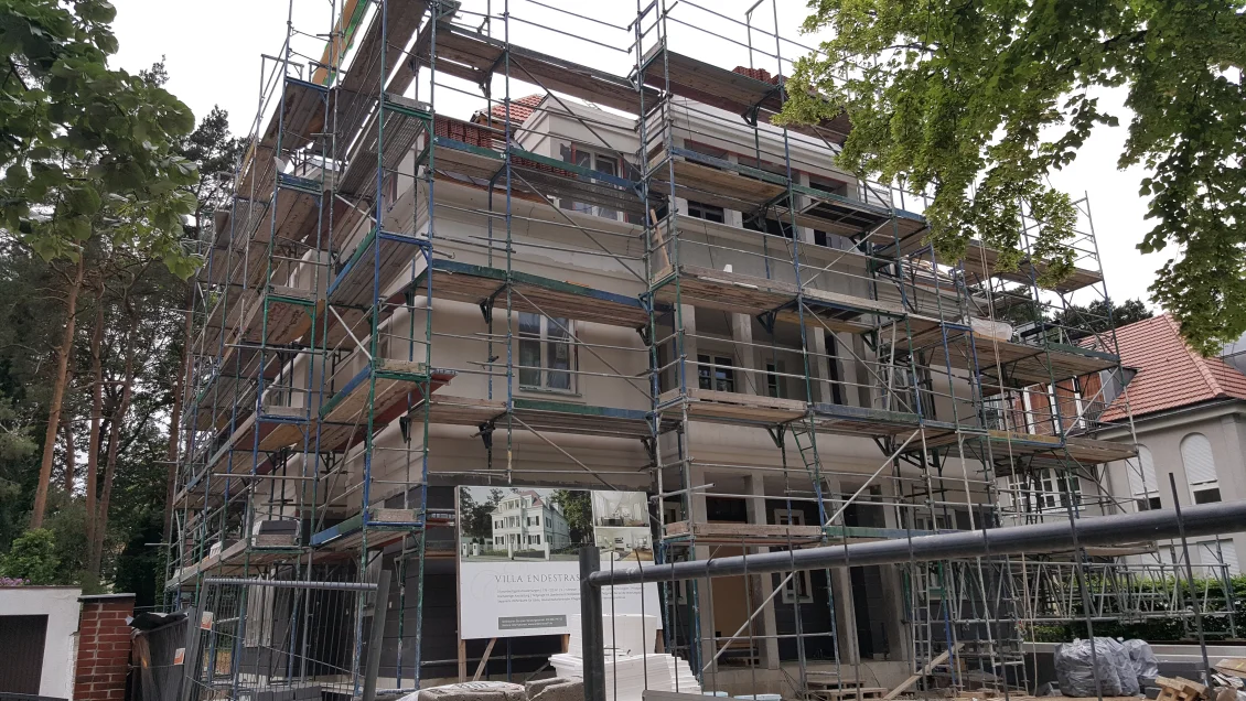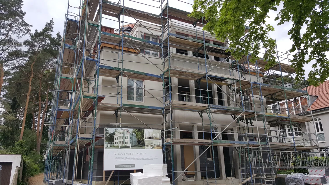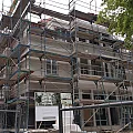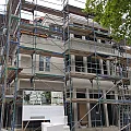 Die Fassade wurde abgerüstet, jetzt kann die Abdichtung der Tiefgaragen- und Kellerdecken erfolgen, damit die Arbeiten an den Außenanlagen fortgesetzt werden können. Im Dachgeschoss werden nach erfolgreich bestandenem Blower-Door-Test die Dachschrägen bekleidet. In den übrigen Geschossen werden die Bäder gefliest und die Parkettarbeiten abgeschlossen.