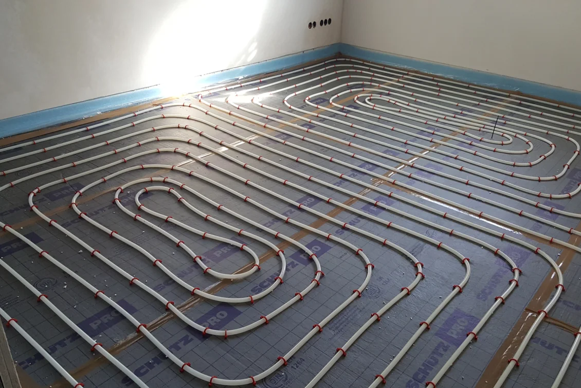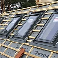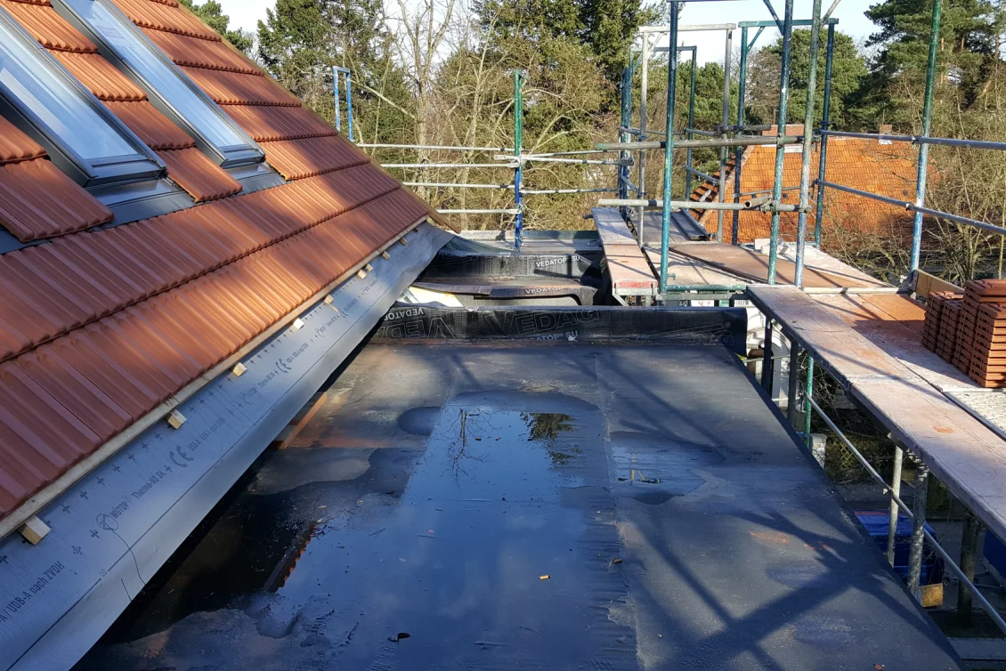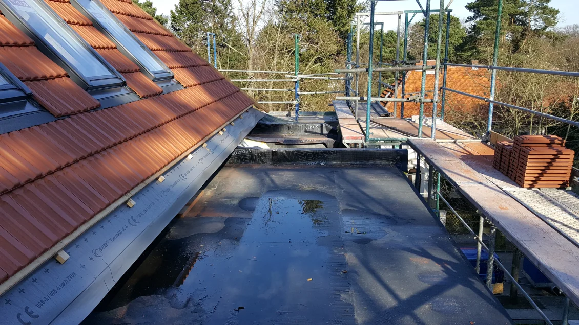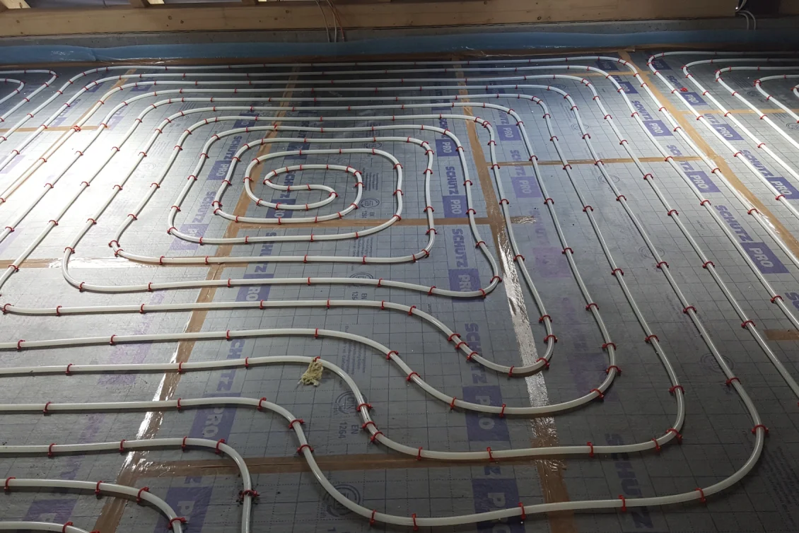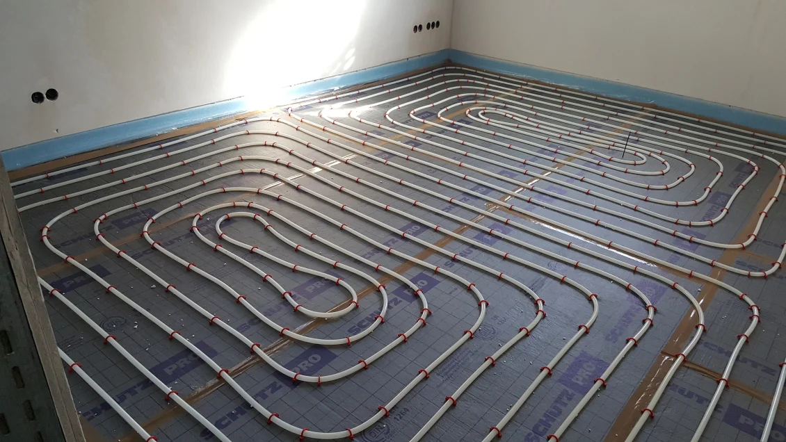Die Rampe der Tiefgarage ist betoniert und hat auf der Oberfläche zur Rutschsicherung einen “Besenstrich” erhalten. Im Gebäude wird bereits in den unteren Geschossen die Fußbodenheizung verlegt, wärend im Spitzboden noch die letzten Installations- und Trockenbauarbeiten ausgeführt werden.